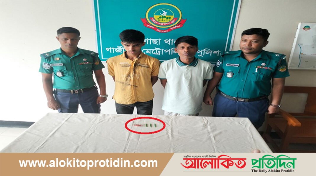 গোপন সংবাদের বিত্তিতে গাজীপুর মহানগরের গাছা থানা পুলিশের মাদক বিরোধী বিশেষ অভিযানে ৭৮ পিছ ইয়াবা ট্যাবলেটসহ দুই মাদক কারবারীকে আটক করেছেন পুলিশ। আটক কৃত মাদক ব্যবসায়ীরা হলেন,(১) মো. ইদ্রিস আলী (৪০), পিতা-মৃত ওমর আলী,(২) মো. মেহেদী হাসান (২১), পিতা- মো. আতাউর রহমান, উভয় ঠিকানা-স্থায়ী: গ্রাম- পশ্চিম জাঝর, ৩২ নং ওয়ার্ড, গাছা, গাজীপুর মহানগর গাজীপুর।