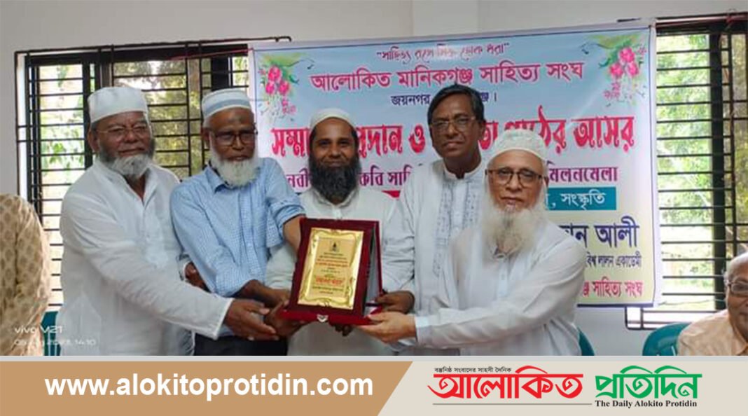 কারিগরি শিক্ষায় বিশেষ অবদান রাখায় আলোকিত মানিকগঞ্জ সাহিত্য সংঘের বিশেষ সম্মাননা প্রদান করা হয়েছে ন্যাশনাল পলিটিকনিক ইনস্টিটিউট (এন পি আই) মানিকগঞ্জের অধ্যক্ষ ড. মোহাম্মদ ফারুক হোসেনকে। সোমবার সকালে আনুষ্ঠানিকভাবে এই সম্মাননা প্রদান করা হয়। ড.যোসেফ মেমোরিয়াল হাসপাতাল মিলনায়তনে আয়োজিত সম্মাননা প্রদান অনুষ্ঠানে সংগঠনের জেলা সভাপতি মো.হাবিল উদ্দিন সভাপতিত্ব করেন। সাধারণ সম্পাদক কবি কায়ুম শাহজীর সঞ্চালনায় আলোচনায় অংশগ্রহণ করেন জাতীয় রবীন্দ্র সংগীত সম্মেলন পরিষদের সভাপতি অধ্যাপক আবুল ইসলাম সিকদার, সাবেক জেলা শিক্ষা অফিসার আব্দুল মুন্নাফ খান, ড.ইঞ্জিনিয়ার মোহাম্মদ ফারুক হোসেন, জয়নগর উচ্চ বিদ্যালয়ের প্রধান শিক্ষক আব্দুর রাজ্জাক, শিক্ষক নেতা আবুবকর সিদ্দিক,হীরালাল সেন সাহিত্য সংঘের জেলা সভাপতি অধ্যাপক মনোয়ার হোসেন, অধ্যাপক মাইনুদ্দিন আহমেদ, প্রফেসর আবুবকর সিদ্দীক মোল্লা, অধ্যাপক আনিসুর রহমান, কবি জসিম উদ্দিন অতশী, অনিল কুমার সরকার, নজরুল- প্রমীলা সাহিত্য সংঘের সভাপতি ডা. আবুল হাসান, সাধারণ সম্পাদক কবি মইন হাসান, প্রগতি লেখক সংঘের সাধারণ সম্পাদক মো.নজরুল ইসলাম, কবি ওয়ারেশ পাশা পলাশ প্রমুখ। এসময় বক্তারা বলেন, স্মার্ট বাংলাদেশ বিনির্মাণে কারিগরি শিক্ষার বিকল্প নেই। শিল্প সাহিত্য ও সংস্কৃতি চর্চার পাশাপাশি কারিগরি শিক্ষায় ড.মোহাম্মদ ফারুক হোসেনের অবদান প্রশংসনীয়।