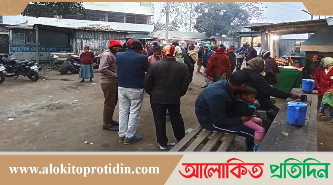 বগুড়ায় তীব্র শীতে কাপছে খেটে খাওয়া সববয়সী নারীপুরুষ। শীতের তীব্রতা বেড়েই চলছে। শুক্রবার সকালে বগুড়া জেলায় মৌসুমে সর্বনিম্ন তাপমাত্রা ১১.৫ ডিগ্রি সেলসিয়াস তাপমাত্রা রেকর্ড করেছেন আবহাওয়া অধিদপ্তর। ঘনকুয়াশা ও হিমেল হাওয়ায় জনজীবন বিপর্যস্ত হয়ে পড়েছে। এতে নিম্ন আয়ের মানুষদের ভোগান্তি চরমে। গরম কাপড় গায়ে জড়িয়ে আবার কেউ রাস্তায় খড়কুটো, কাগজ জ্বালিয়ে শীত নিবারণের চেষ্টা করছে। অনেকেই ঘর থেকে বের হচ্ছে না, যতক্ষণ না সূর্যের দেখা মেলে। বগুড়া আবহাওয়া অফিস সূত্রে জানা গেছে, জানুয়ারি মাসের শুরুতে তাপমাত্রা কমতে থাকে। মাঝে বেশ কয়েকদিন তাপমাত্রা বাড়লেও আবারো কমতে শুরু করেছে, এ অবস্থা আরো এক সপ্তাহ থাকতে পারে। এদিকে ভোর থেকে ঘন কুয়াশার কারণে সড়ক মহাসড়কে হেড লাইট জ্বালিয়ে চলাচল করছে যানবাহন। রিক্সাচালক, দিনমজুরদের শীতে ভোগান্তি বাড়ে। খেটে খাওয়া এসব মানুষ জীবিকা নির্বাহের জন্য ঘনকুয়াশা উপেক্ষা করে ঘর থেকে বের হলেও এতো সকালে লোকজন না পেয়ে বসে থাকে শীতের তীব্রতা সাথী করে। নৈশ প্রহরী আব্দুল আজীজ জানান, রাত নয়টা থেকে সকাল পর্যন্ত মার্কেট পাহাড়ায় থাকেন তিনি। রাতে দিনে ঠান্ডা বাতাস শীতের তীব্রতা বাড়িয়ে দিয়েছে। রিক্সাচালক রফিকুল ইসলাম জানান, যত শীত হোক, নিজের ও পরিবারের সদস্যদের খরচ মেটাতে ঘর থেকে বের হতেই হবে। রিক্সা না চালালে কি খাবো, তবে শীতের গরম কাপড় পেলে উপকৃত হবেন বলে জানান। ইজিবাইক চালক রুস্তম আলী জানান, সকালে কুয়াশায় কিছু দেখা যায় না, বড় বড় গাড়িগুলো হেডলাইট জ্বালিয়ে সড়ক মহাসড়কে চলাচল করছে। শহরের সাতমাথা এলাকায় খড়কুটো, পরিত্যক্ত কাগজ জ্বালিয়ে শীত নিবারণের চেষ্টা করছে বেশ কয়েকজন মানুষ। তারা জানান, ভোর থেকেই ঠান্ডা বাতাস, তাই আগুন জ্বালিয়ে শীত নিবারণের চেষ্টা। আবহাওয়া অফিস বগুড়ার উচ্চ পর্যবেক্ষক নুরুল ইসলাম জানান, জেলায় আজ সকালে ১১.৫ ডিগ্রি সেলসিয়াস তাপমাত্রা রেকর্ড করা হয়েছে, যা চলতি মৌসুমে সর্বনিম্ন। এ অবস্থা আরো কয়েকদিন থাকতে পারে বলে তিনি জানান।