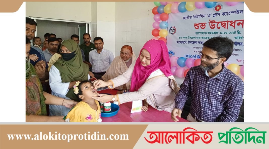 শেরপুরের নকলায় জাতীয় ভিটামিন ‘এ’ প্লাস ক্যাম্পেইন এর শুভ উদ্বোধন করা হয়েছে আজ । শনিবার ১ জুন সকালে উপজেলা স্বাস্থ্য ও প.প কর্মকর্তার কার্যালয়ের আয়োজনে এবং জাতীয় পুষ্টি সেবা জনস্বাস্থ্য পুষ্টি প্রতিষ্ঠান স্বাস্থ্য অধিদপ্তর, স্বাস্থ্য ও পরিবার কল্যান মন্ত্রণালয়ের বাস্তবায়নে উক্ত ক্যাম্পেইনের উদ্বোধন করা হয়।