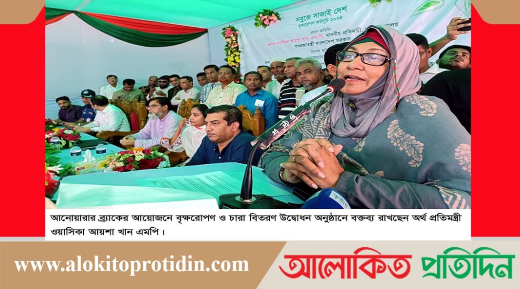 আনোয়ারার ব্র্যাকের আয়োজনে বৃক্ষরোপণ ও চারা বিতরণ উদ্বোধন অনুষ্ঠানে বক্তব্য রাখছেন অর্থ প্রতিমন্ত্রী ওয়াসিকা আয়শা খান এমপি।