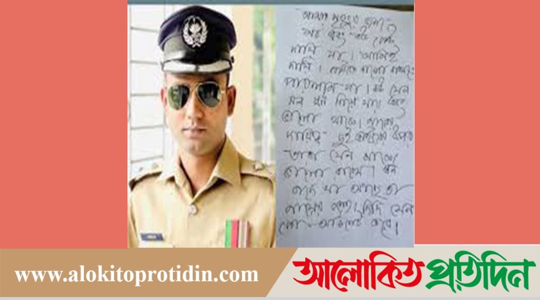 ওই চিরকুটে লেখা রয়েছে, ‘আমার মৃত্যুর জনা মা এবং বউ কেউ দায়ী না। আমিই দায়ী। কাউকে ভালো রাখতে পারলাম না। বউ যেন সব স্বর্ণ নিয়ে যায় এবং ভালো থাকে। মায়ের দায়িত্ব দুই ভাইয়ের ওপর। তারা যেন মাকে ভালো রাখে। স্বর্ণ বাদে যা আছে তা মায়ের জন্য। দিদি যেন কো-অর্ডিনেট করে।’