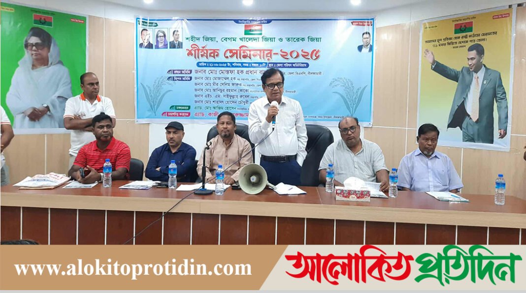 উজ্জ্বল আহমেদ- বিশেষ প্রতিনিধিঃ নীলফামারীতে শহীদ প্রেসিডেন্ট জিয়াউর রহমান, বিএনপির চেয়ারপারসন বেগম খালেদা জিয়া ও ভারপ্রাপ্ত চেয়ারম্যান তারেক রহমানকে ঘিরে “শহীদ জিয়া, বেগম খালেদা জিয়া ও তারেক জিয়া” শীর্ষক এক সেমিনার অনুষ্ঠিত হয়েছে। শনিবার দিনব্যাপী জেলা পরিষদ অডিটরিয়ামে এ সেমিনার অনুষ্ঠিত হয়। সেমিনারে সদর উপজেলা ও ইউনিয়ন পর্যায়ের তৃণমূল নেতারা অংশ গ্রহণ করেন। সেমিনারে প্রধান অতিথি হিসেবে বক্তব্য রাখেন, জেলা বিএনপির সহ-সভাপতি মোস্তফা হক প্রধান বাচ্চু।