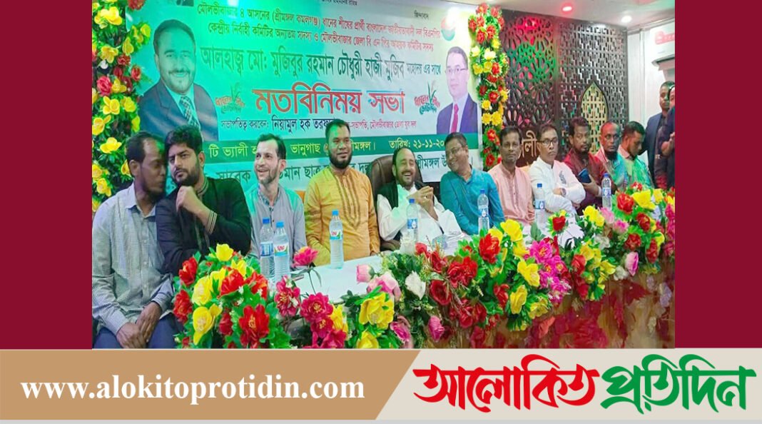 শ্রীমঙ্গল প্রতিনিধি মো: আল-আমিন: মৌলভীবাজার জেলার শ্রীমঙ্গলে সাবেক ছাত্রদল,যুবদল ও বিএনপির নেতৃবৃন্দের সাথে মতবিনিময় করেছেন, বিএনপির কেন্দ্রীয় নির্বাহী কমিটির অন্যতম সদস্য ও মৌলভীবাজার ৪ (শ্রীমঙ্গল-কমলগঞ্জ) আসনের ধানের শীষের প্রার্থী আলহাজ্ব মুজিবুর রহমান চৌধুরী (হাজী মুজিব)। আজ শুক্রবার (২১নভেম্বর) বিকালে শহরের টি ভ্যালী, রেস্টুরেন্টের হল রুমে এ সভা অনুষ্ঠিত হয়।সভায়মৌলভীবাজার জেলা যুবদলের সহ-সভাপতি নিয়ামুল হক তরফদারের সভাপতিত্বে ও মৌলভীবাজার জেলা ছাত্র দলের সহ-সভাপতি মোবারক হাসান লুৎপার, সঞ্চালনায় মতবিনিময় সবার কার্যক্রম শুরু হয়। মতবিনিময় সভায় প্রধান অতিথি হিসেবে বক্তব্য রাখেন আলহাজ্ব মুজিবুর রহমান চৌধুরী (হাজী মুজিব)। এছাড়াও বক্তব্য রাখেন, পৌর বিএনপির আহ্বায়ক কমিটির সদস্য, মোছাব্বির আলী মুন্না, সৈয়দ আবু জাফর সালাউদ্দিন, উপজেলা বিএনপি’র সদস্য বাদশা মিয়া কাজল, মৌলভীবাজার স্বেচ্ছাসেবক দলের সহ-সভাপতি মুজিবুর রহমান তপন,মির্জাপুর ইউনিয়ন যুবদলের সাবেক সভাপতি মাসুক আহমেদ,উপজেলা যুবদলের সদস্য সচিব টিটু আহমেদ, মৌলভীবাজার জেলা ছাত্রদলের সহ-সভাপতি ও সিন্দুরখান ইউনিয়ন পরিষদের চেয়ারম্যান ইয়াছিন আরাফাত রবিন,সাবেক ছাত্র নেতা মোরাদ হোসেন প্রমুখ। এসময় আরও উপস্থিত ছিলেন উপজেলা বিএনপির আহ্বায়ক কমিটির সদস্য নজরুল ইসলাম জাহান,মৌলভীবাজার জেলা ছাত্র দলের সহ-সভাপতি সাইফুর রহমান শিপু,আলী হোসেন, উপজেলা স্বেচ্ছাসেবক দলের সিনিয়র যুগ্ম আহ্বায়ক তইয়বুর রহমান,পৌর ছাত্র দলের আহ্বায়ক জহিরুল ইসলাম জাহিদ, সাবেক ছাত্র নেতা জালাল আহমেদ,এবং বিএনপির বিভিন্ন অঙ্গ সংগঠনের অন্যান্য নেতৃবৃন্দসহ ৫ শতাধিক কর্মীবৃন্দ।