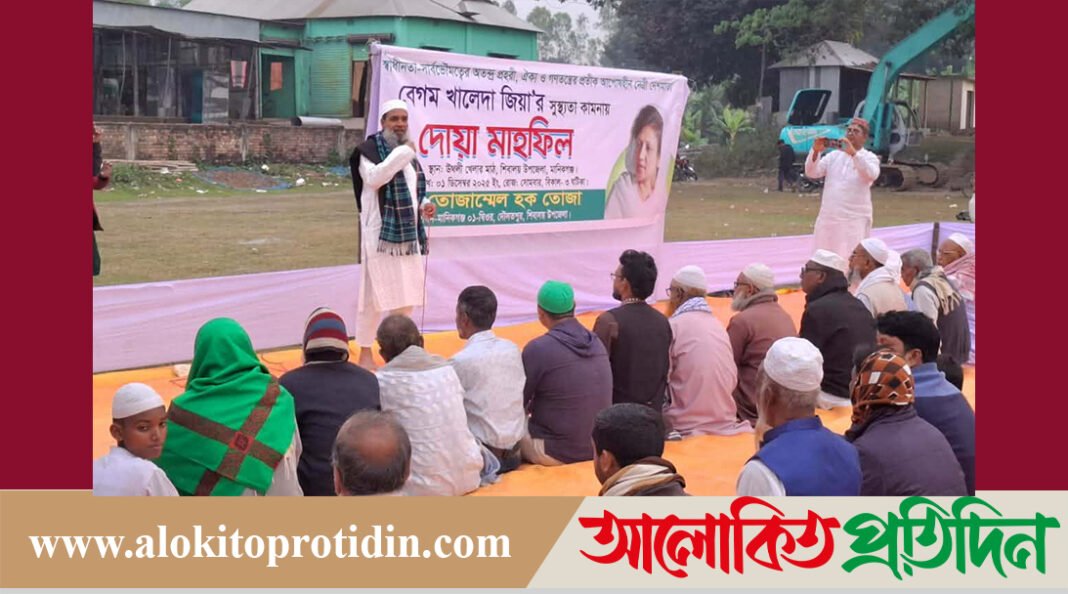 আঞ্চলিক প্রতিনিধি, মানিকগঞ্জ : বিএনপির চেয়ারপার্সন ও তিন বারের সাবেক প্রধানমন্ত্রী বেগম খালেদা জিয়ার সুস্থতা কামনায় মানিকগঞ্জের শিবালয়ে বিশেষ দোয়া মাহফিল অনুষ্ঠিত হয়েছে। সোমবার (১ ডিসেম্বর) বিকেলে উপজেলার উথলী খেলার মাঠে এই দোয়া মাহফিলের আয়োজন করা হয়। অনুষ্ঠানে সভাপতিত্ব করেন মানিকগঞ্জ জেলা সাবেক কৃষকদলের আহবায়ক ও দৌলতপুর উপজেলার সাবেক চেয়ারম্যান তোজাম্মেল হক তোজা। দোয়া মাহফিলে আরও উপস্থিত ছিলেন জেলা জিয়া মঞ্চের সভাপতি মিজানুর রহমান, দপ্তর সম্পাদক বাচ্চু হোসেন, শিবালয় উপজেলা বিএনপির নেতা এসএম আব্বাস, যুবদল যুগ্ম আহবায়ক আলম হোসেন, ইমদাদুল হক মিলন, কবির হোসেনসহ বিভিন্ন অঙ্গ ও সহযোগী সংগঠনের নেতাকর্মীরা। দোয়া মোনাজাত পরিচালনা করেন উথলী তারা মসজিদের পেশ ইমাম মো. জাদুল ইসলাম। এ সময় বক্তারা বলেন, বেগম খালেদা জিয়া দেশের গণতন্ত্রের প্রতীক। তার সুস্থতা কামনা করে দেশবাসী আজ দোয়া করছে। আল্লাহ যেন তাকে দ্রুত সুস্থ করে আমাদের মাঝে ফিরিয়ে দেয়।