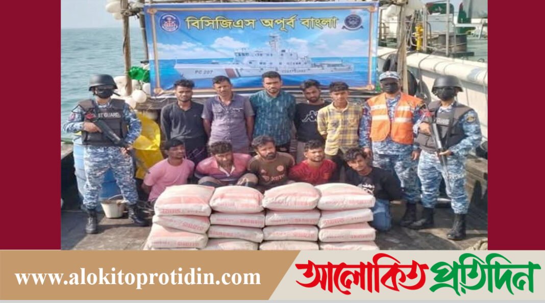 হেলাল উদ্দিন, টেকনাফ: সাগরপথে মিয়ানমারে পাচারের সময় ১ হাজার ৬০০ বস্তা সিমেন্ট ও দুইটি ফিশিং বোটসহ মোট ১৮ জন পাচারকারীকে আটক করেছে বাংলাদেশ কোস্ট গার্ড। মঙ্গলবার (২৪ ফেব্রুয়ারি) বিকালে কোস্ট গার্ডের মিডিয়া কর্মকর্তা লেফটেন্যান্ট কমান্ডার সাব্বির আলম সুজন এ তথ্য নিশ্চিত করেন। তিনি জানান, গোপন সংবাদের ভিত্তিতে মঙ্গলবার মধ্যরাত ১টায় “অপারেশন সমুদ্র প্রহরা”-য় নিয়োজিত কোস্ট গার্ড জাহাজ কামরুজ্জামান সেন্টমার্টিনের ছেঁড়াদ্বীপের দক্ষিণ-পশ্চিম সংলগ্ন সমুদ্র এলাকায় একটি বিশেষ অভিযান পরিচালনা করে। এসময় একটি সন্দেহভাজন ফিশিং বোটে তল্লাশি চালিয়ে অবৈধভাবে শুল্ক-কর ফাঁকি দিয়ে মিয়ানমারে পাচারের উদ্দেশ্যে বহনকৃত প্রায় ৫ লাখ টাকা মূল্যের ১,০০০ বস্তা সিমেন্ট উদ্ধার করা হয়। এ ঘটনায় পাচার কাজে ব্যবহৃত বোটসহ ১০ জনকে আটক করা হয়। অপরদিকে, একই দিন রাত ৩টায় “অপারেশন কোরাল দ্বীপ”-এ নিয়োজিত কোস্ট গার্ড জাহাজ অপূর্ব বাংলা ছেঁড়াদ্বীপের দক্ষিণ-পশ্চিম সংলগ্ন সমুদ্র এলাকায় আরেকটি বিশেষ অভিযান চালায়। এসময় একটি ফিশিং বোটে তল্লাশি করে প্রায় ৩ লাখ টাকা মূল্যের ৬০০ বস্তা সিমেন্ট জব্দ করা হয় এবং পাচার কাজে জড়িত আরও ৮ জনকে আটক করা হয়। জব্দকৃত সিমেন্ট, ফিশিং বোট ও আটক ব্যক্তিদের বিরুদ্ধে পরবর্তী আইনানুগ ব্যবস্থা গ্রহণের কার্যক্রম প্রক্রিয়াধীন রয়েছে। কোস্ট গার্ডের পক্ষ থেকে জানানো হয়, পাচার ও চোরাচালান রোধে ভবিষ্যতেও এ ধরনের অভিযান অব্যাহত থাকবে।